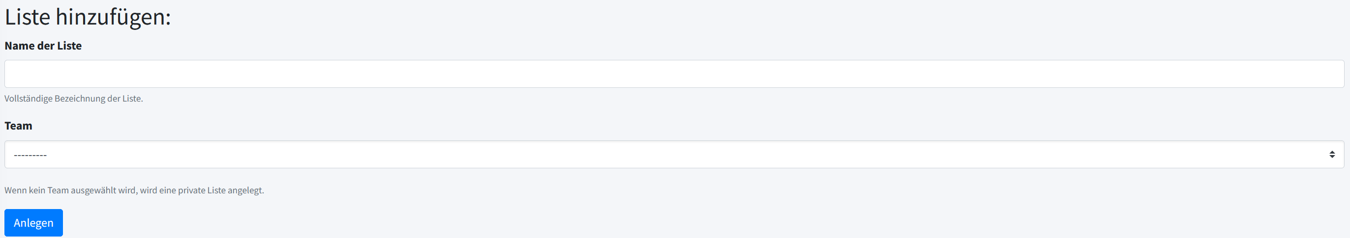 Über den Button Anlegen wird die neue Aufgabenliste erstellt.