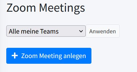 Links oben gibt es einen blauen Button „+ Zoom Meeting anlegen".