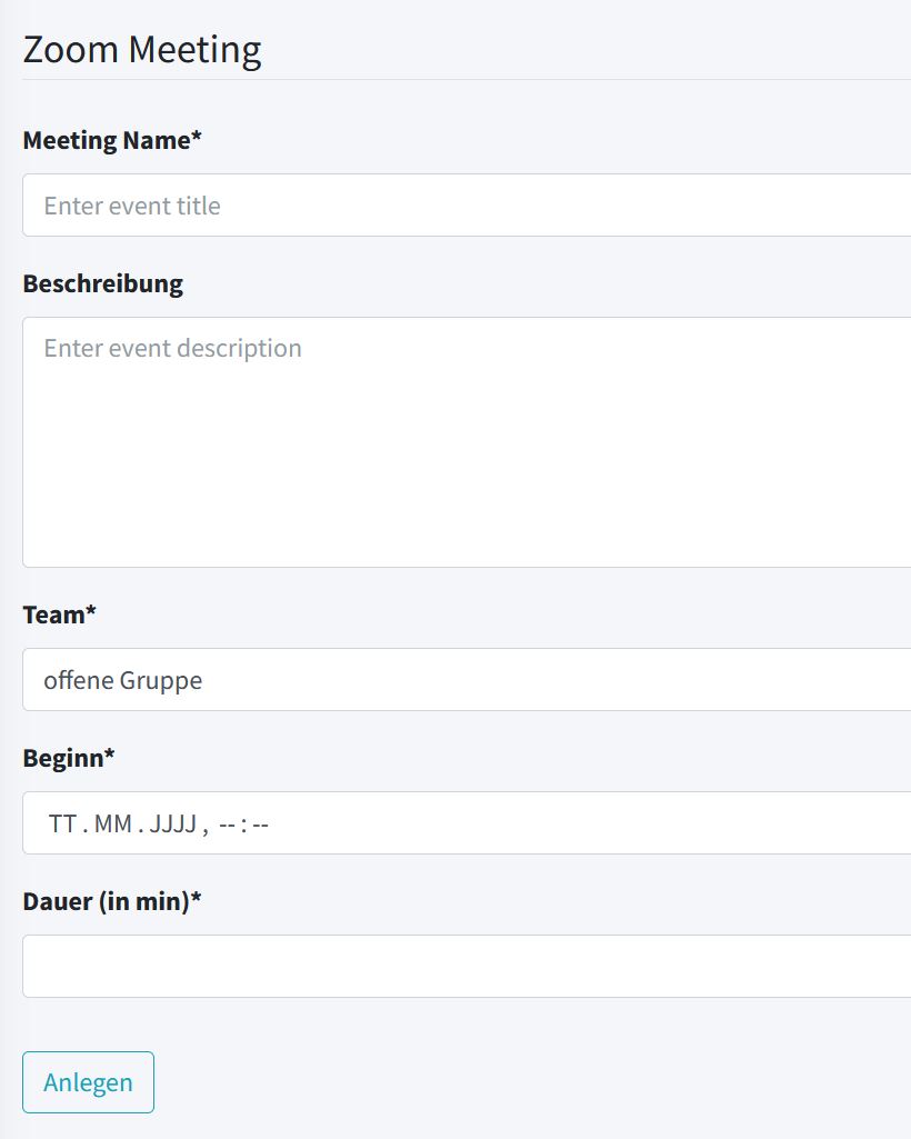 Es wird automatisch geprüft, ob der Zoom-Raum zu dem geplanten Termin noch frei ist. Falls er bereits reserviert sein sollte, erscheint eine entsprechende Meldung.